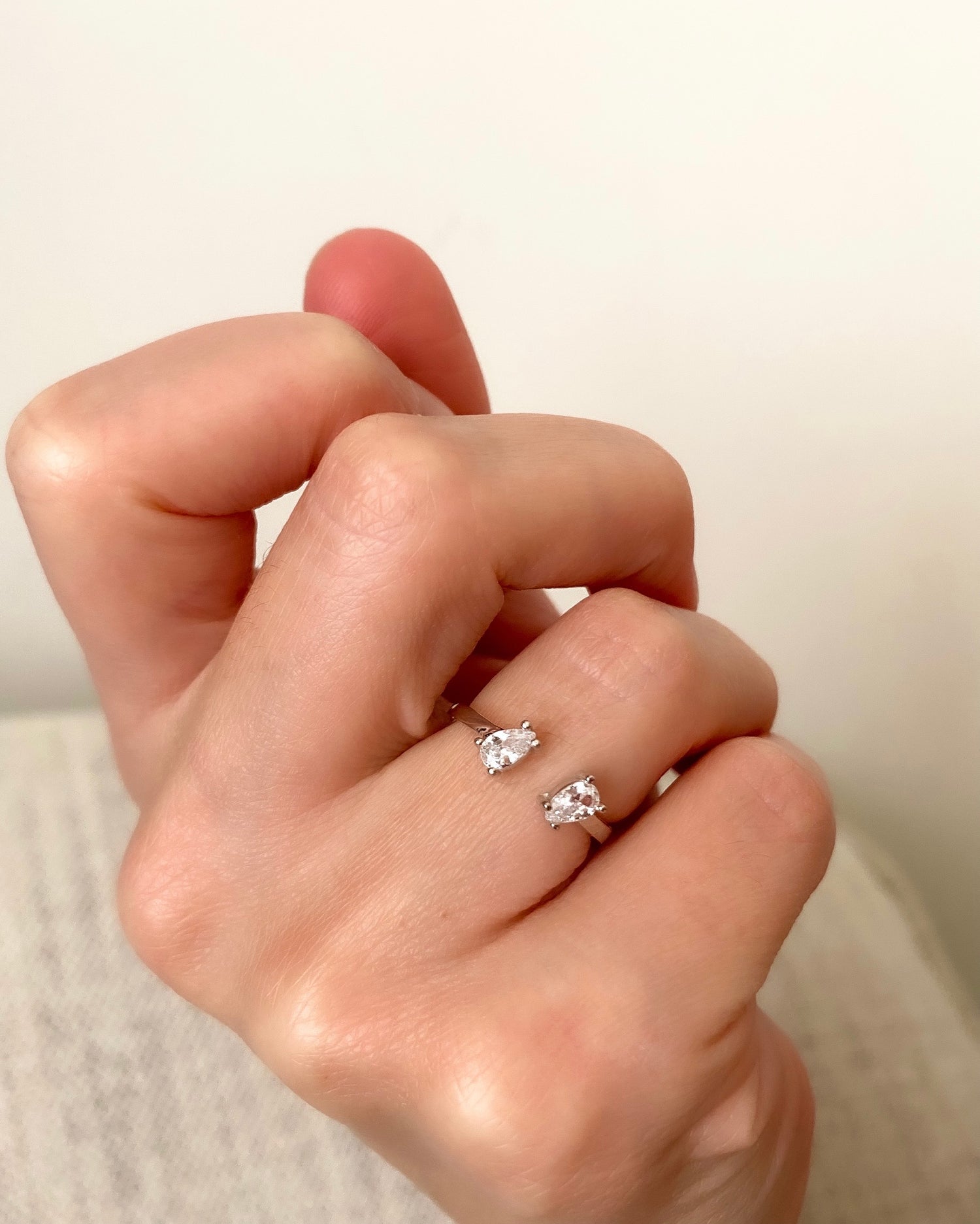 The Pear open ring is adjustable, it’s modern style with the pear zirconia stones is the perfect statement ring for your collection. We love how you can adjust this ring to your look, wear on any finger.